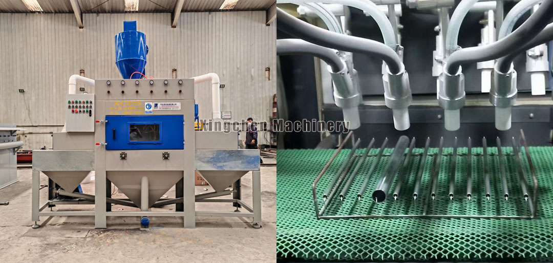 2. The angle of each spray gun can be freely adjusted, and the gun rack can achieve automatic variable frequency swinging, allowing for targeted sandblasting. It has strong flexibility and wide applicability;