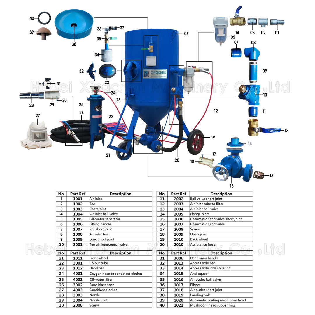 1. This machine adopts a straight-through sandblasting valve, which completely solves the problem of abrasive blockage, and the speed of sandblasting outlet can reach 200M/S