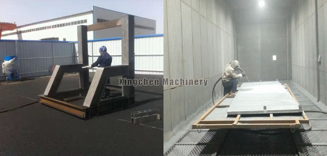 It can replace the acid pickling and phosphating process, eliminating the issue of sewage charges. Rapid sandblasting for rust removal not only changes the surface roughness but also removes welding slag, burrs, and flash. With high efficiency, low cost, and good quality, it is unmatched by traditional chemical and manual rust removal methods. After sandblasting, the paint quality is excellent and the coating has a long lifespan, making it a commonly adopted process method internationally.