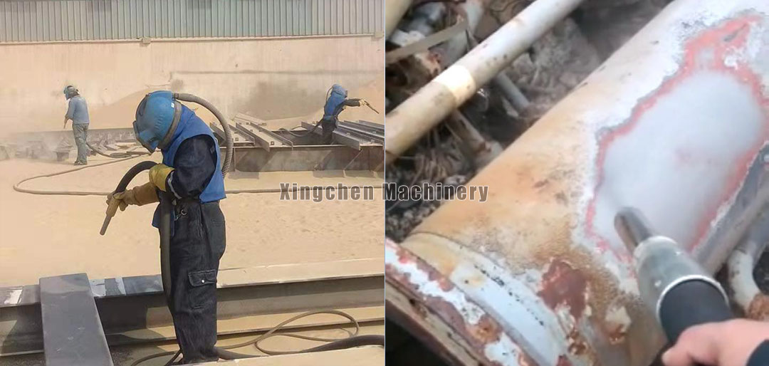 It is used for cleaning steel structures, molds, fitness and amusement equipment, carving patterns on glass and stone tablets, shipbuilding, bridges, mines, machinery, oil pipelines, water conservancy projects, port construction, and other processes such as rust removal, spray pattern processing, oxide scale removal, and deburring. It can also be used for spraying and electroplating pretreatment processes to improve the adhesion of the coating (plating) layer on all surface treatments. It is used for spraying glass beads and strengthening the surface of polished parts.